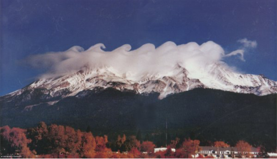 Figure 1: These clouds look just like waves on the sea. This is because they are both produced by the so-called `Kelvin-Helmholtz' instability mechanism (google this scientific term for lots of amazing images).