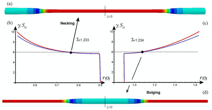 [4] Weakly nonlinear analysis of localized bulging of an inflated hyperelastic tube of arbitrary wall thickness, JMPS (2020)